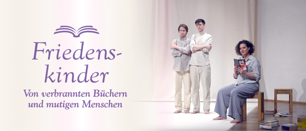 Mit Originaltexten von neun unerschrockenen Schriftsteller*innen, wie Nelly Sachs, Erich Kästner und Stefan Zweig, deren Werke der Bücherverbrennung zum Opfer fielen, entsteht bei „Friedenskinder“ ein bildintensives Schauspiel. Geschichte und Geschichten, die berühren, Mut machen, zum Nachdenken anregen und aufrütteln, den Frieden in der Welt zu wahren und für Freiheit einzustehen.